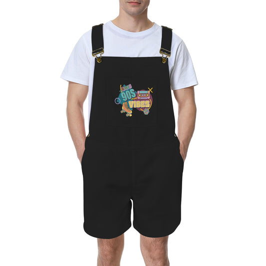 90's Vibes Black Unisex Shorts Suspender Jumpsuit