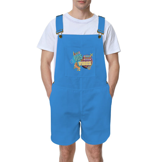 90's Vibes Curious Blue Unisex Shorts Suspender Jumpsuit