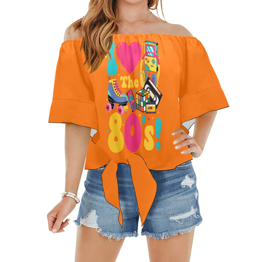 I Love the 80's Off Shoulder Knot Front Blouse