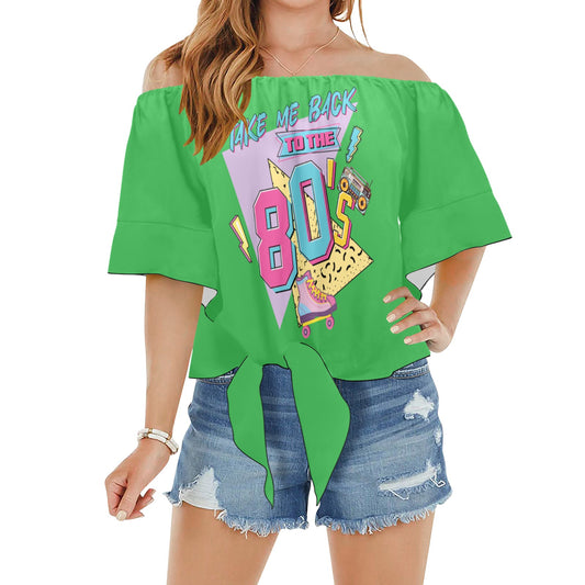 Take me Back to the 80's Off Shoulder Knot Front Blouse