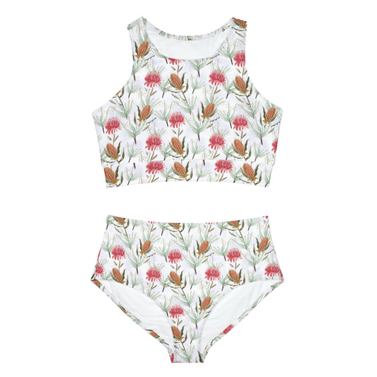 Australian Floral, Girls Two Piece Swimsuit, Australian Floral, Australian Animals