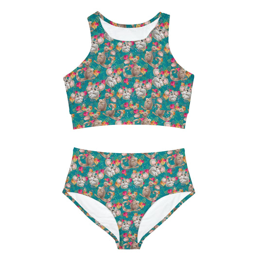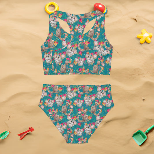 Australian Koala and Kangaroo, Girls Two Piece Swimsuit, Australian Floral, Australian Animals