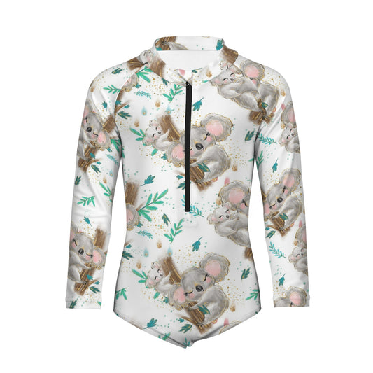Australian Animals Koala Little Girls' Long Sleeve One-Piece Swimsuit (Model S61)