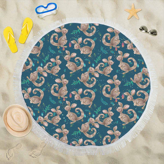 Australian Kangaroos Blue Circular Beach Towel Shawl 59"