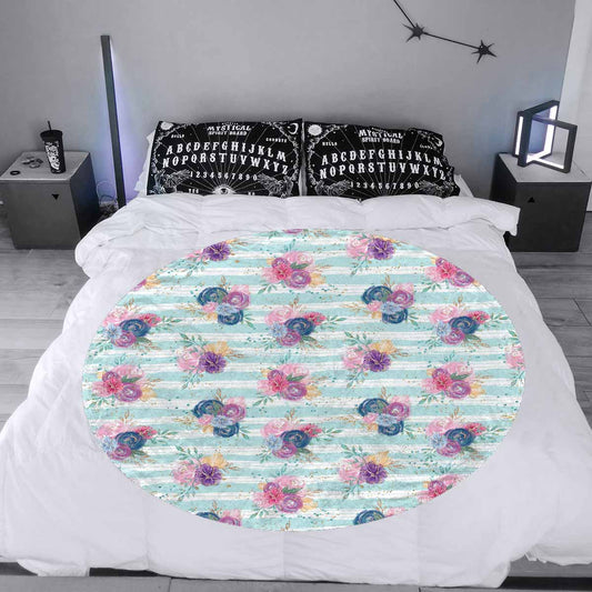 Purple and Pink floral Blue Stripes Circular Micro Fleece Blanket 60"