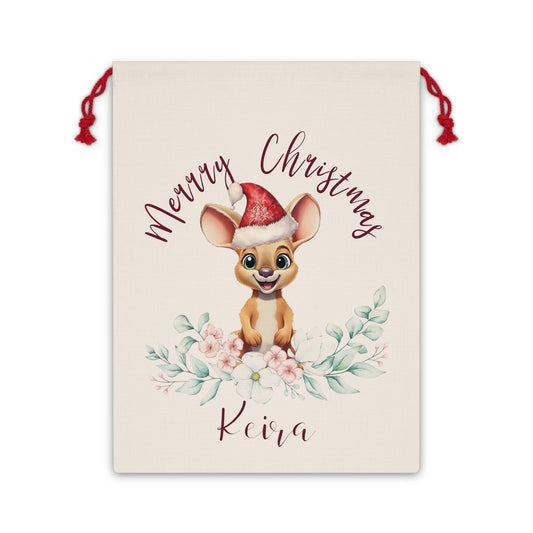 Personalised Santa Sack, Kangaroo, Eucalyptus Leaves Linen Bag