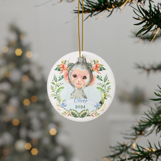 Personalized Monkey Ceramic Ornament, Custom Holiday Decor, Double-Sided Printing, Cute Animal Keepsake, Christmas Tree Hanging Gift