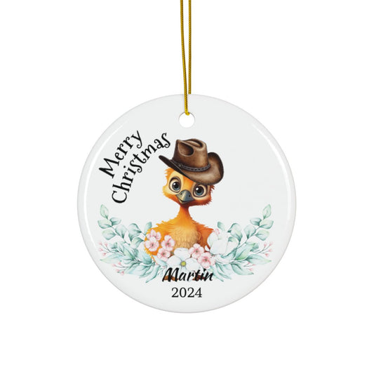Australian Animals Ornament, Cowboy Emu Design, Personalized Ceramic, Two-Sided Print, Unique Christmas Gift