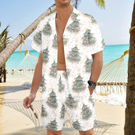 Men's Shirt & Shorts Set Christmas Trees Men's Shirt and Shorts Outfit (Set26)