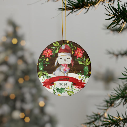 Bunny Ceramic Ornament, Personalized Christmas Ornament, Custom Holiday Décor, Cute Animal Keepsake