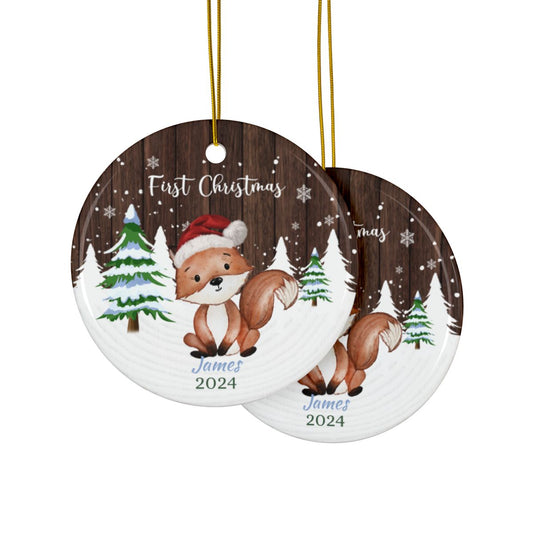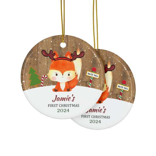 Personalized Fox Christmas Ornament, Custom Holiday Décor, Cute Animal Ceramic Keepsake, Child's First Christmas Gift