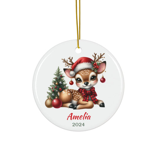 Cute Deer Ornament, Personalized Holiday Décor, Ceramic Ornament, Custom Christmas Tree Decoration, Reindeer Ornament Gift