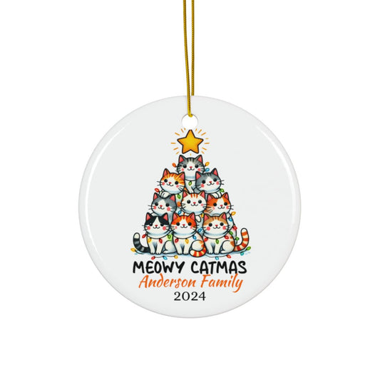 Personalized Cat Tree Ornament, Custom Christmas Cat Decor, Ceramic Pet Ornament, Cute Cat Family Keepsake, Holiday Cat Ornament