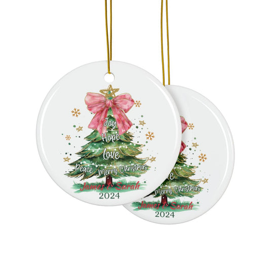 Personalized Christmas Ornaments, Custom Holiday Tree Decoration, Ceramic Keepsake, Joy Hope Love Decor, Gift for Families