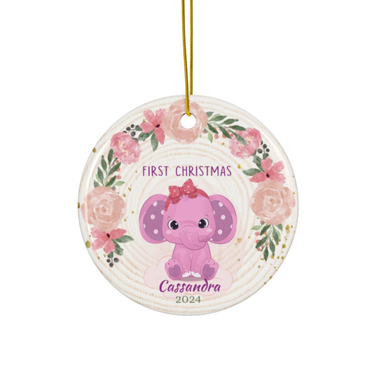 Elephant Ornament Personalized, Ceramic Holiday Decoration, Custom Name Keepsake Gift, Cute Baby Elephant Design, Floral Nursery Decor