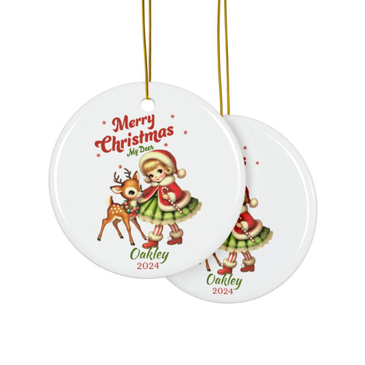 Personalized Christmas Ornament, Holiday Decoration, Custom Ceramic Ornament, Cute Reindeer Ornament, Holiday Gift, Tree Ornament,