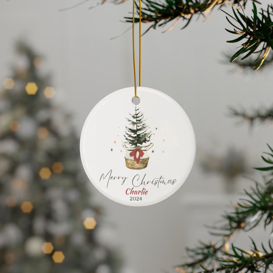 Christmas Ornament Personalized, Holiday Decor Ceramic, Custom Tree Decoration, Unique Gift for Family, Vintage Style Ornament