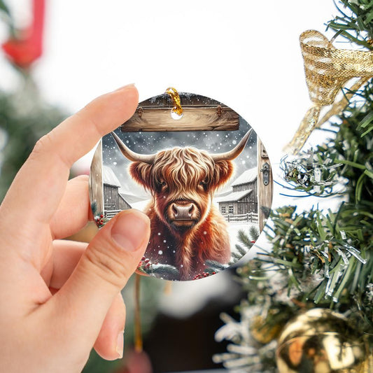 Winter Barn Highland Cow Christmas Ornament