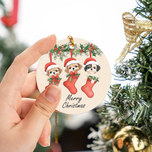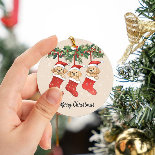 Puppies Merry Christmas Ornament
