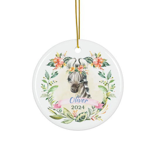Personalized Ceramic Ornament, Custom Zebra Christmas Decoration, Holiday Gift, Animal Print, Double Sided, Custom Name Ornament