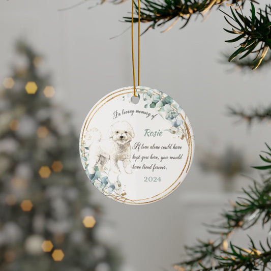 Bichon Memorial Ornament, Personalized Pet Keepsake, Custom Dog Remembrance, Ceramic Christmas Decor, Pet Loss Gift, Holiday Tree Ornament