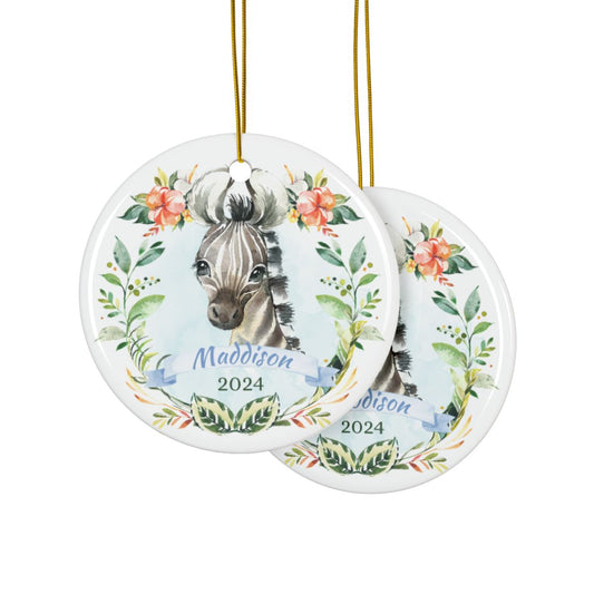 Personalized Zebra Ornament, Ceramic Holiday Decoration, Custom Christmas Keepsake, Animal Theme, Gift for Zebra Lovers