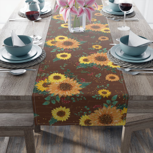 Sunflower Floral Table Runner, Cotton Twill and Poly Available, 2 sizes Available