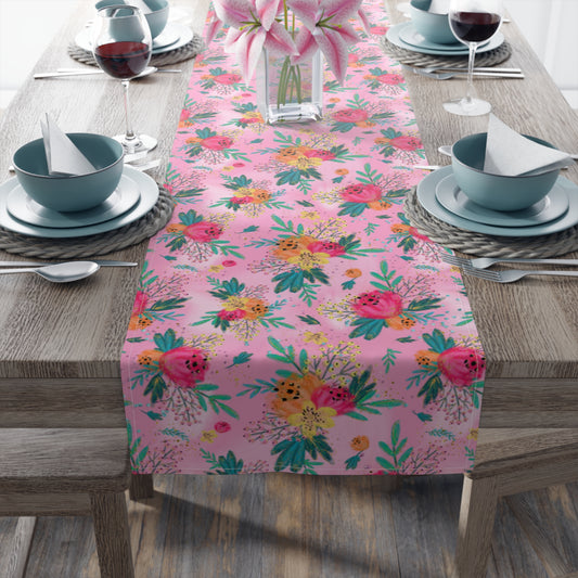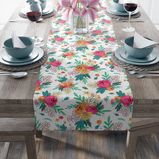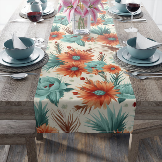 Boho Floral Table Runner, Cotton Twill and Poly Available