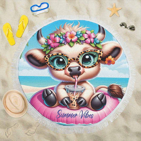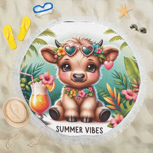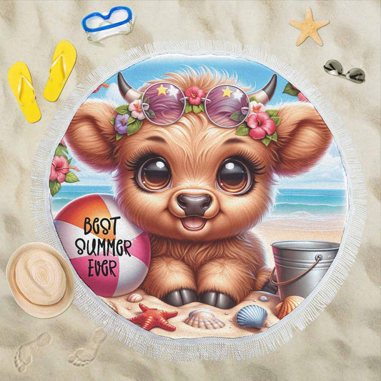 Highland Cow Awd35105 Circular Beach Towel Shawl 59"
