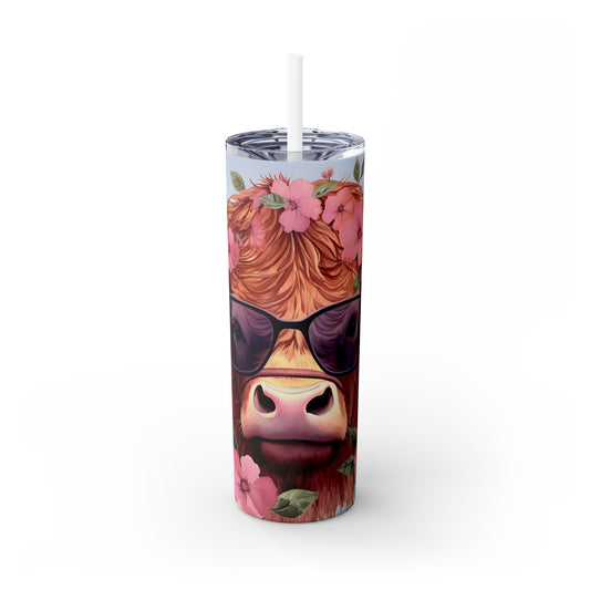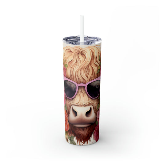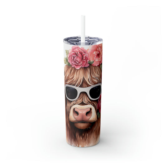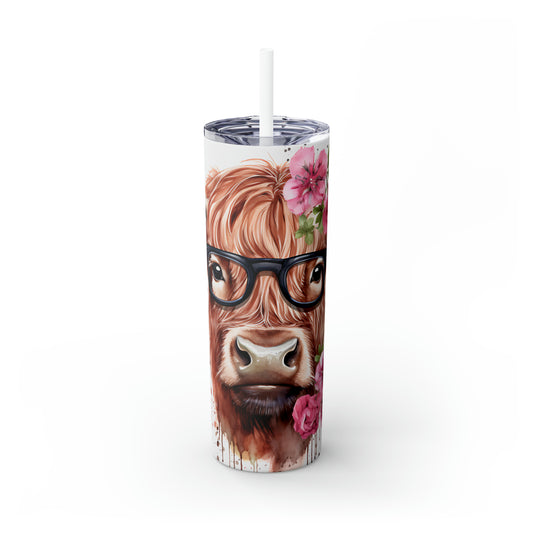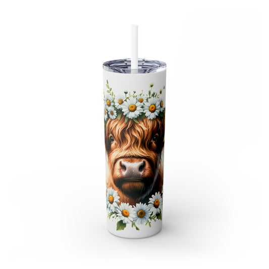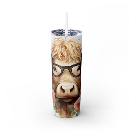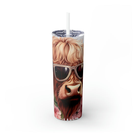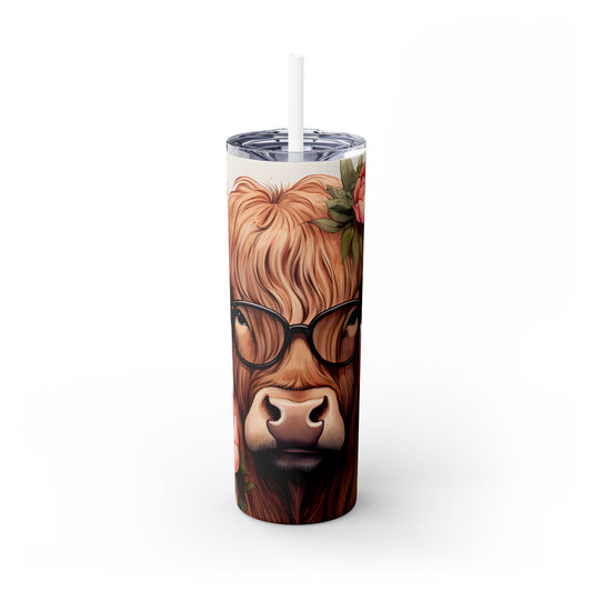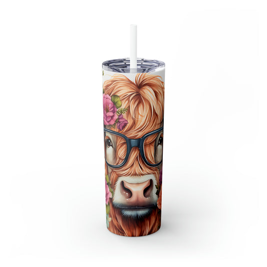 Skinny Tumbler with Straw, 20oz Highlander Cow