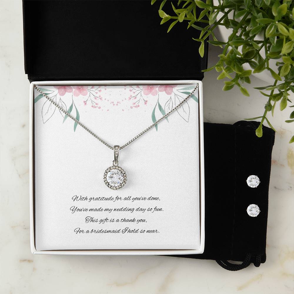 Bridesmaid Wedding day Jewellery gift set, Eternal Hope Necklace and Cubic Zirconia Earring Set