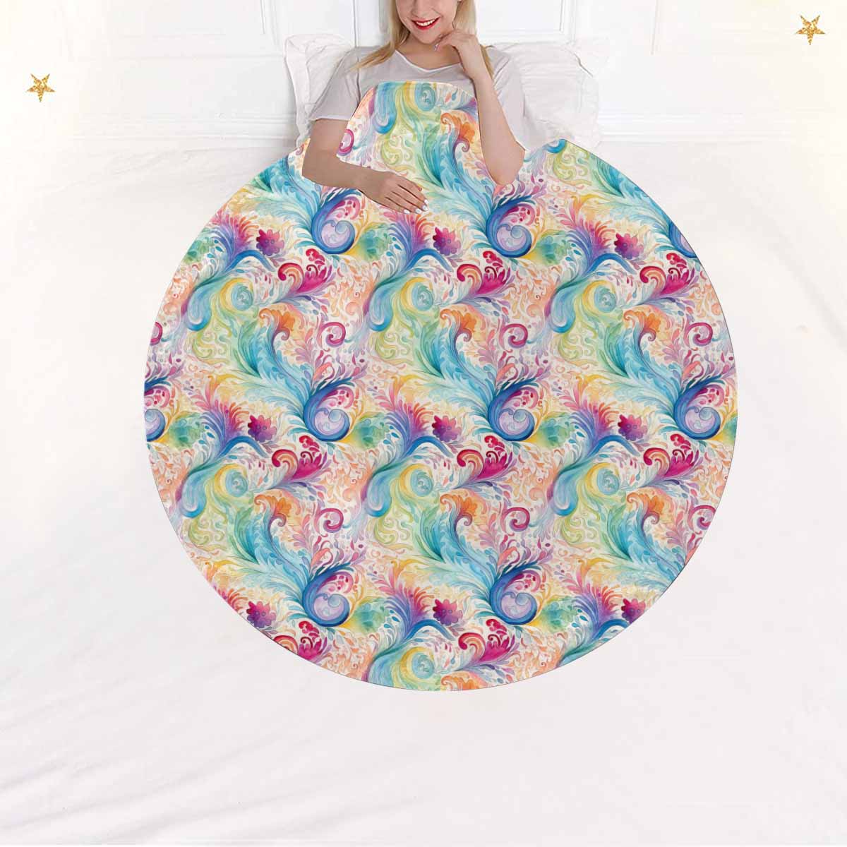 Pastel Rainbow Paisley Circular Micro Fleece Blanket 60"
