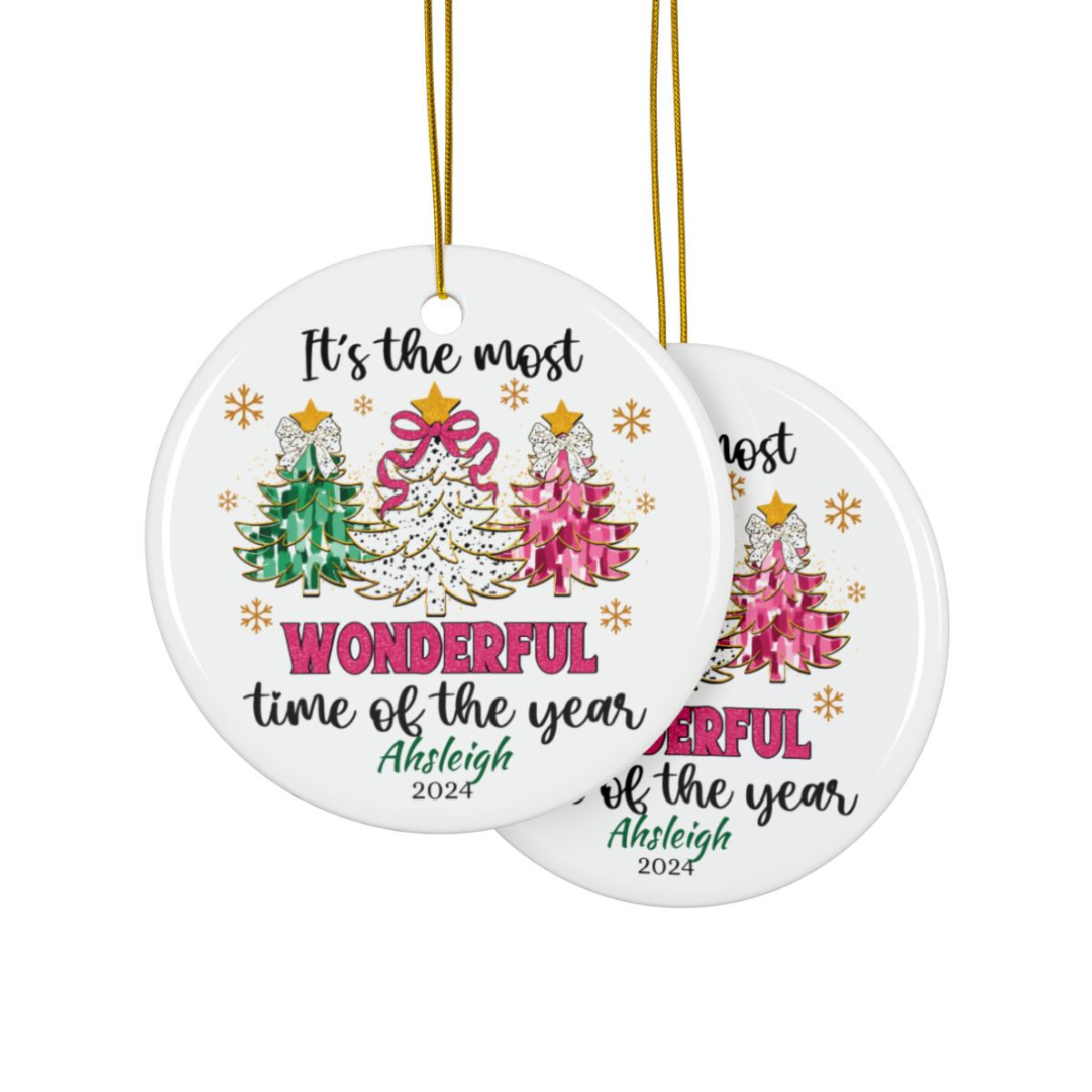 🎄 Add a touch of personalized charm to your holiday decor with these stunning ceramic ornaments! Featuring a vibrant two-sided print, this ornament beautifully showcases three festive tree designs adorned in colorful accents. Perfectly round with a glossy finish, it’s crafted from 100% durable ceramic, ensuring it will grace your tree for years to come.